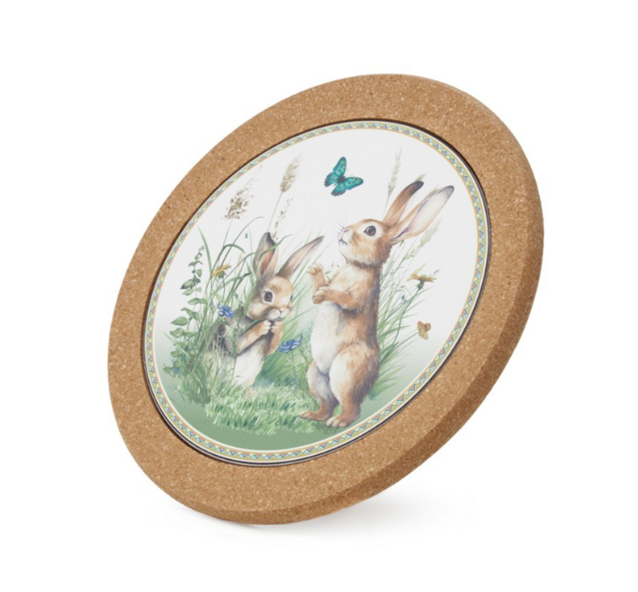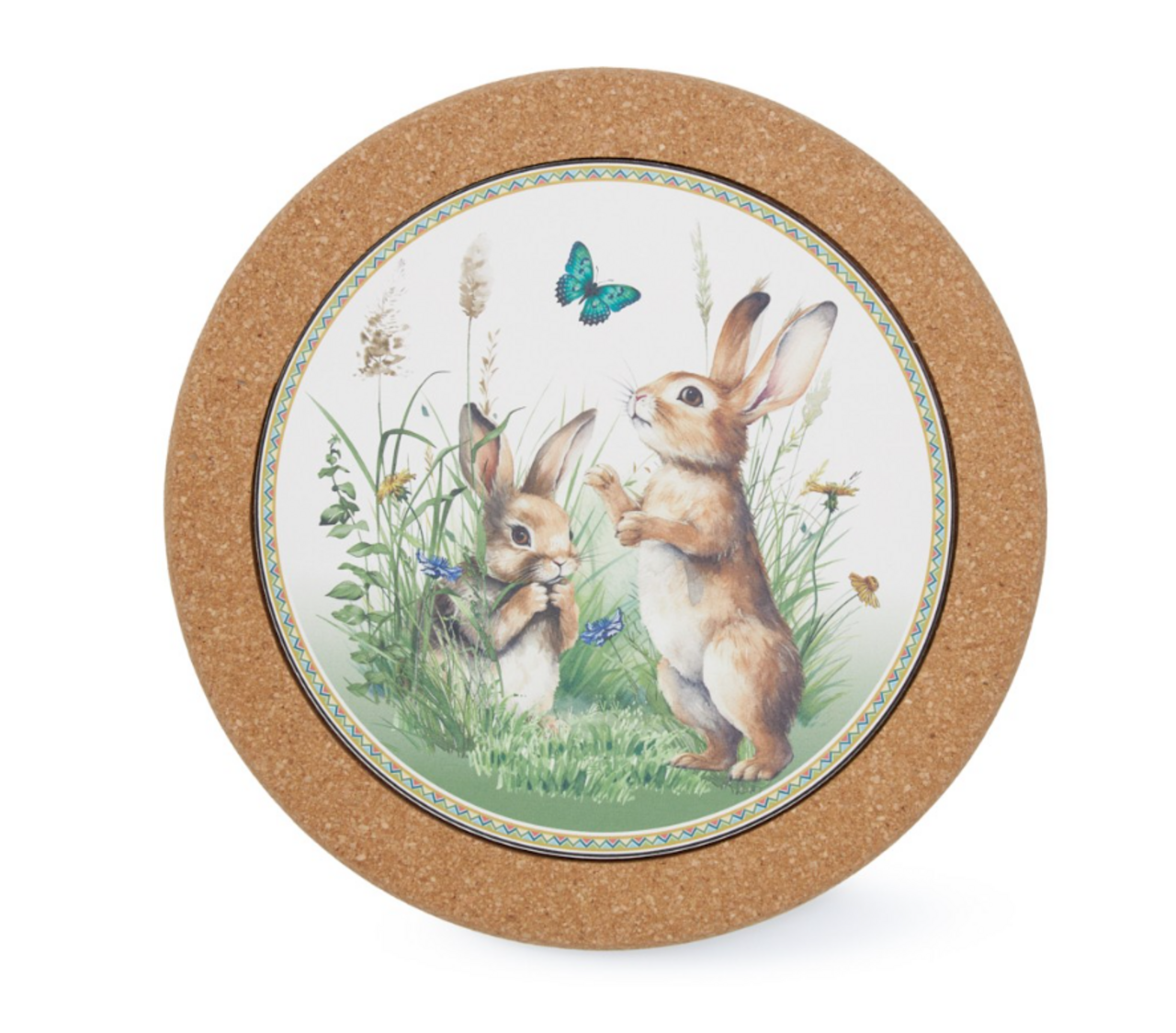 Создайте атмосферу уюта и доброты на вашей кухне с новой авторской подставкой для горячего от Fissman, выполненной в уникальном дизайне с изображением милых кроликов в зелёной траве.