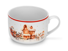 Дизайн чашки выполнен в праздничной тематике, что делает её идеальной для новогодних встреч и уютных вечеров с горячим шоколадом или чаем. Её большой объем позволяет налить достаточно напитка, чтобы наслаждаться им долго и с комфортом.