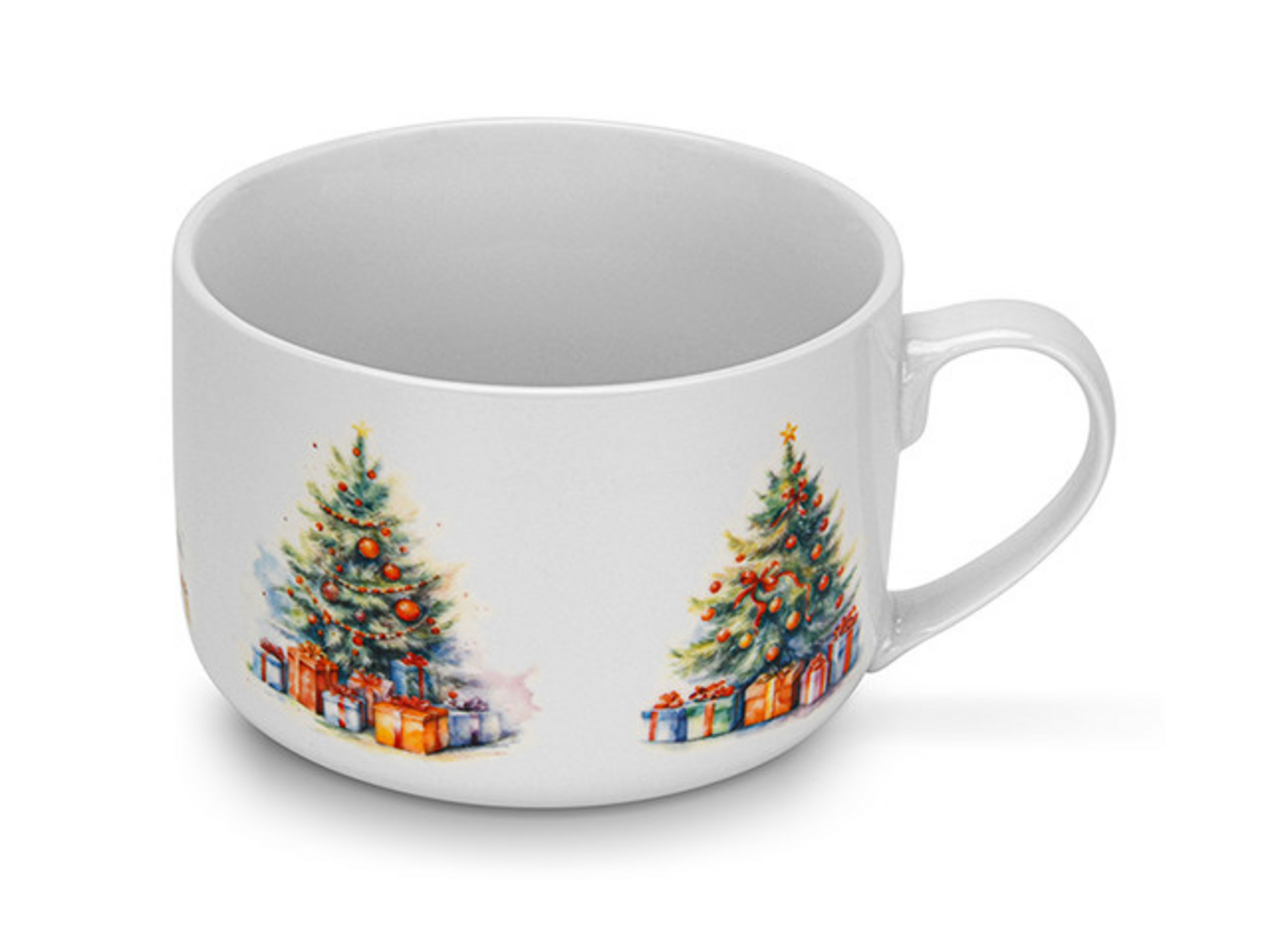 Дизайн чашки выполнен в праздничной тематике, что делает её идеальной для новогодних встреч и уютных вечеров с горячим шоколадом или чаем. Её большой объем позволяет налить достаточно напитка, чтобы наслаждаться им долго и с комфортом.