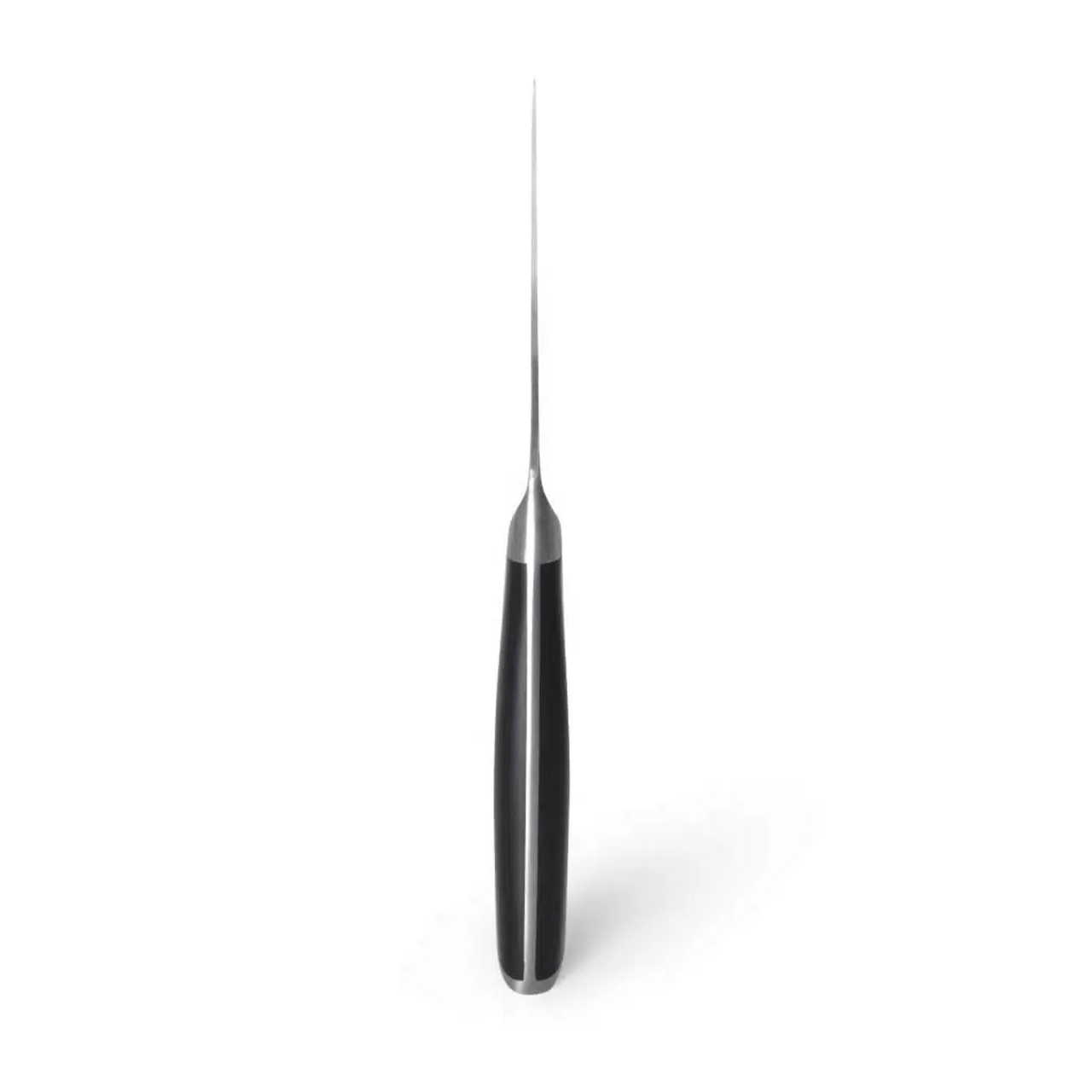 Овощной нож с коротким лезвием удобен для точных работ, таких как очистка и нарезка мелких овощей и фруктов. Он отлично подходит для работы с продуктами, где требуется высокая маневренность. Нож имеет удобную рукоять, обеспечивающую надежный хват, что важно для безопасного и комфортного использования.
