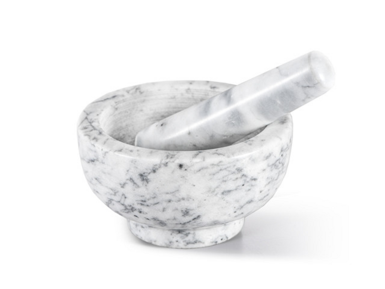 Мрамор не только придает ступке элегантный вид, но и обеспечивает долговечность и устойчивость к механическим повреждениям. Компактные размеры делают ее удобной для хранения и использования, а тяжелый пестик помогает легко справляться с любыми задачами.