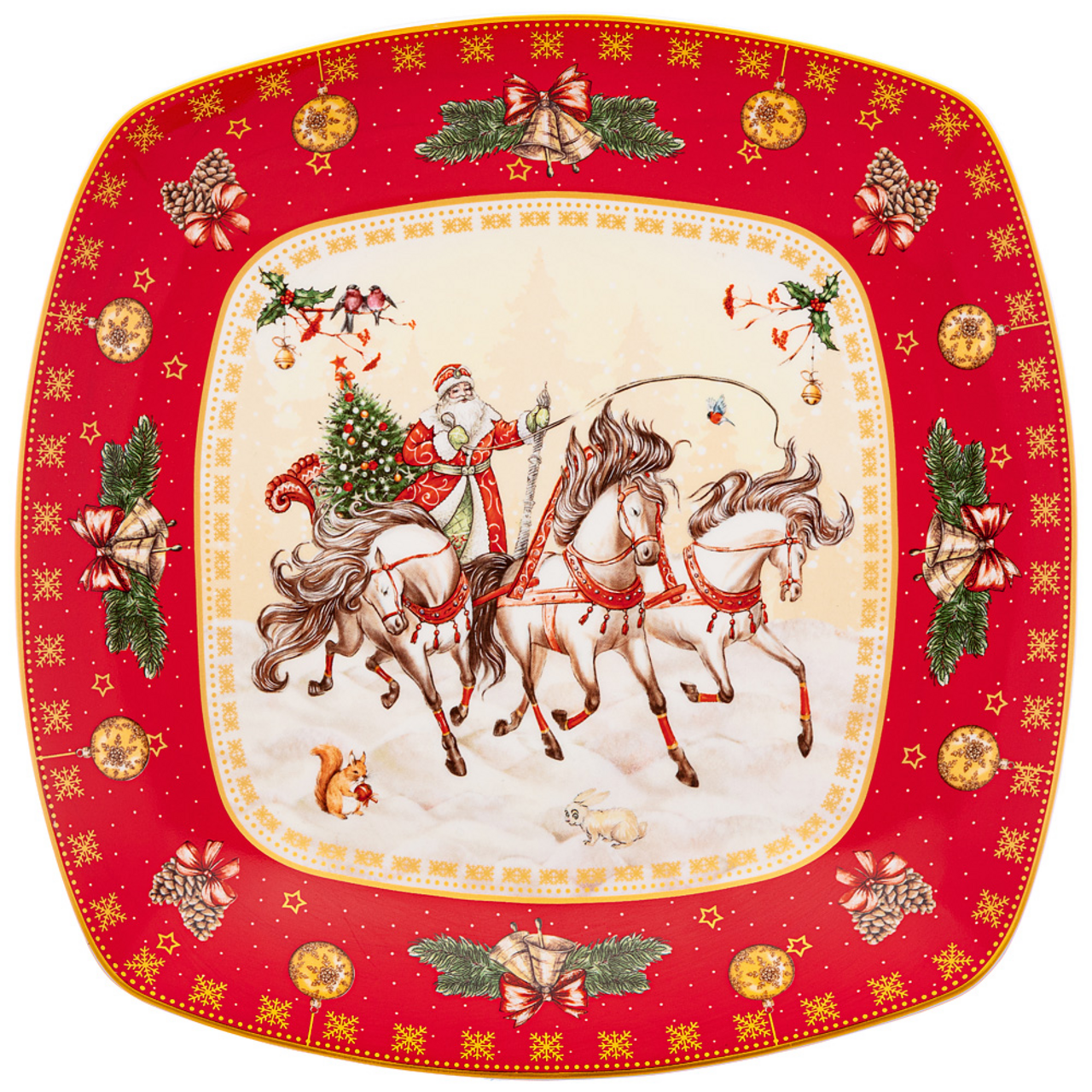 Блюдо Lefard "Тройка" — это изысканный элемент сервировки, вдохновлённый русским фольклором и традициями, который станет украшением вашего стола для любых закусок, салатов или десертов. Изготовленное из высококачественного фарфора, оно отличается прочностью, элегантностью и лёгкостью, обеспечивая долговечность и простоту ухода. Дизайн с зимним мотивом придется кстати к новогодним праздникам.