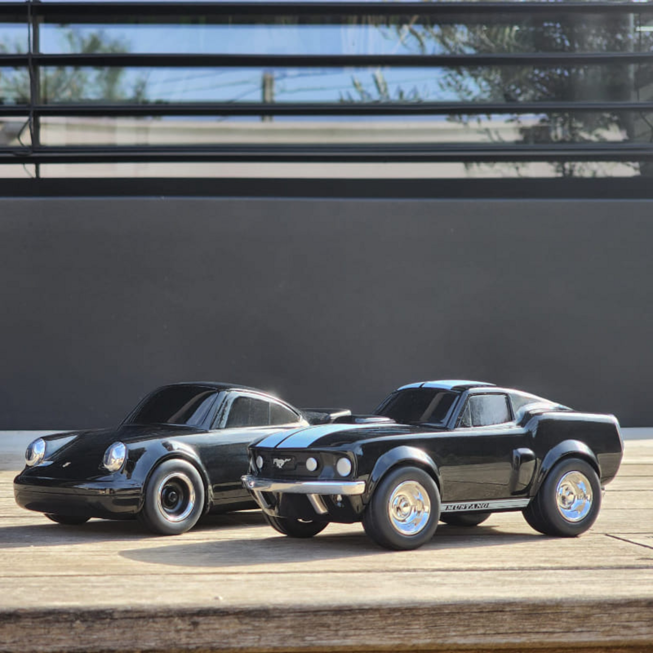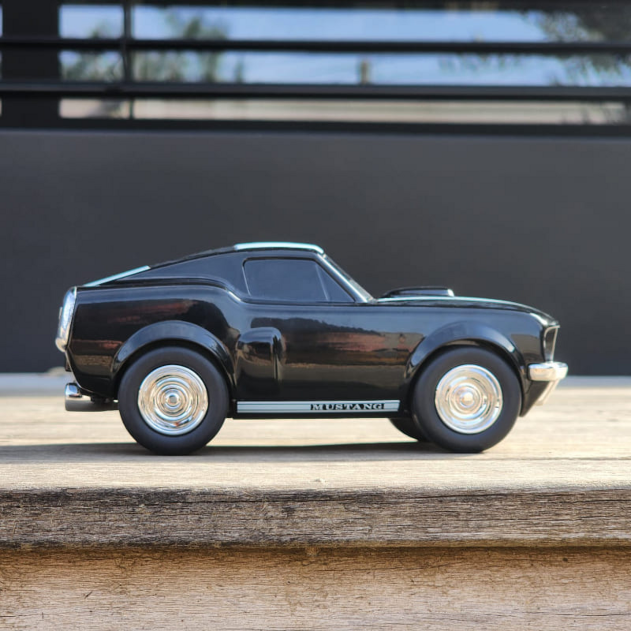 Классика вне времени — чёрный Ford Mustang в миниатюре. Легендарные формы, узнаваемый силуэт и благородный цвет делают эту игрушку не просто машинкой, а символом силы и стиля. Прочный корпус, удобная форма и плавный ход колёс позволяют ребёнку с лёгкостью управлять автомобилем в любом игровом сценарии. Она создаёт атмосферу ретро-гонок, пробуждает фантазию и превращает игру в увлекательное путешествие в мир больших скоростей и уверенных решений.