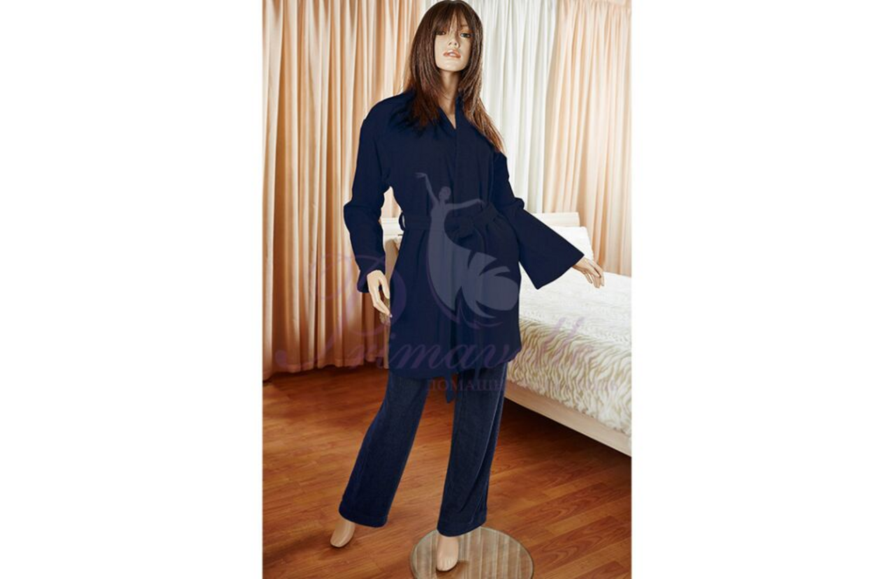 Удобный костюм Alessandra из тонкой махры подойдет для энергичных хозяек. Верх: жакет-кимоно с длинными рукавами и поясом, низ: брюки прямого кроя на резинке. Длина жакета по спинке - 79 см. Модель предлагается в нескольких цветах: бежевый, темно-коричневый; темно-синий. Вы можете выбрать подходящей именно Вам вариант. Костюм легко стирается, не теряет цвет и форму.