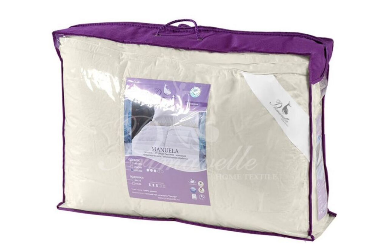 Надежные чехлы из натурального хлопка, цветной кант из атласа, высокое качество натурального пуха категории Экстра — все это непременные атрибуты одеяла Manuela.