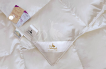 Жемчужина коллекции – одеяло Silvana с наполнителем из мазурийского гусиного пуха в чехле из натурального шелка с хлопком.