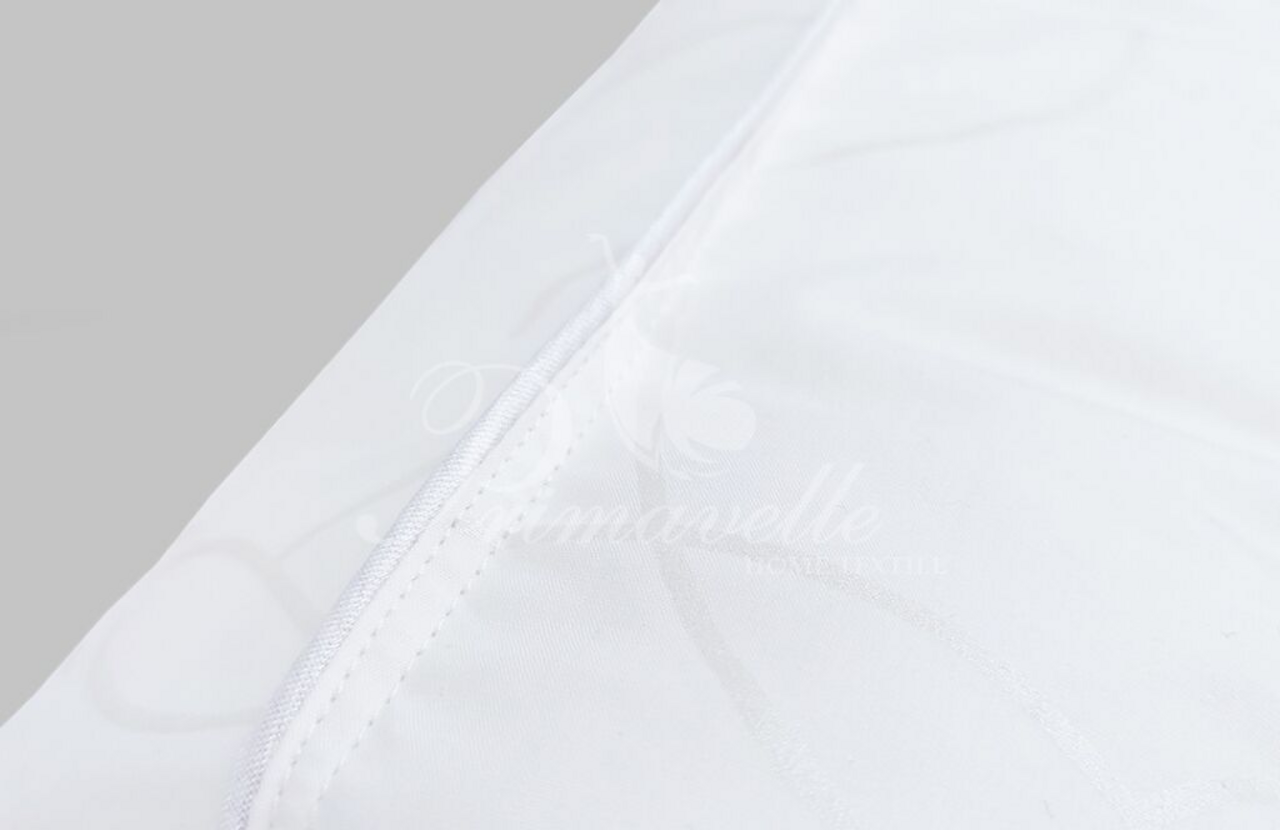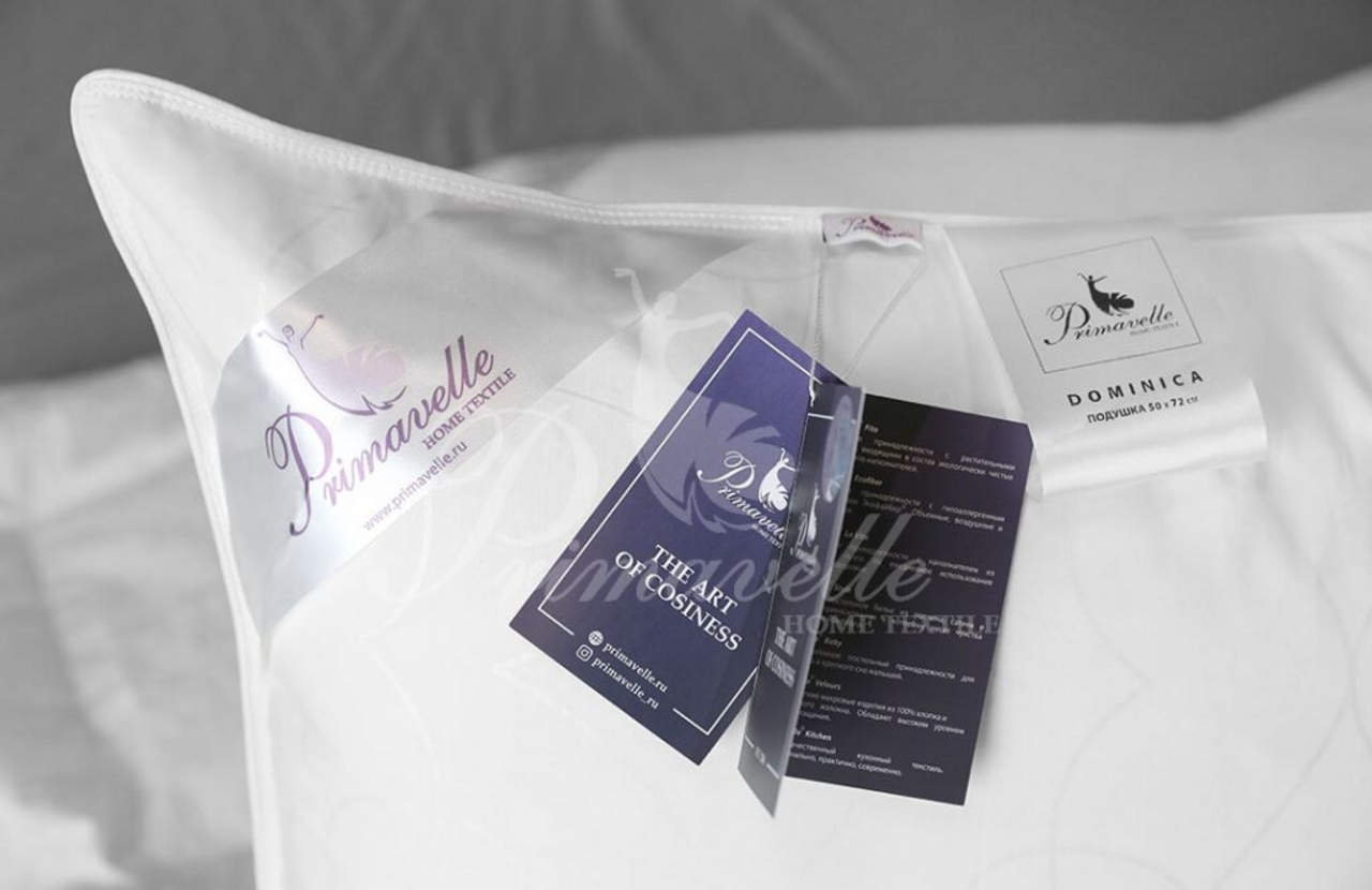Комбинация ткани и наполнителя прекрасно пропускает воздух и вентилируется, при этом надежно удерживается внутри не допуская миграции пуха наружу. Стильный белый цвет и утонченный вензельный дизайн придают подушке изысканный вид, а двойная отстрочка и кант наделяют атрибутами Premium сегмента.