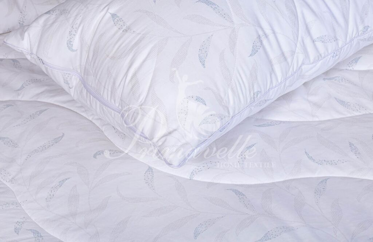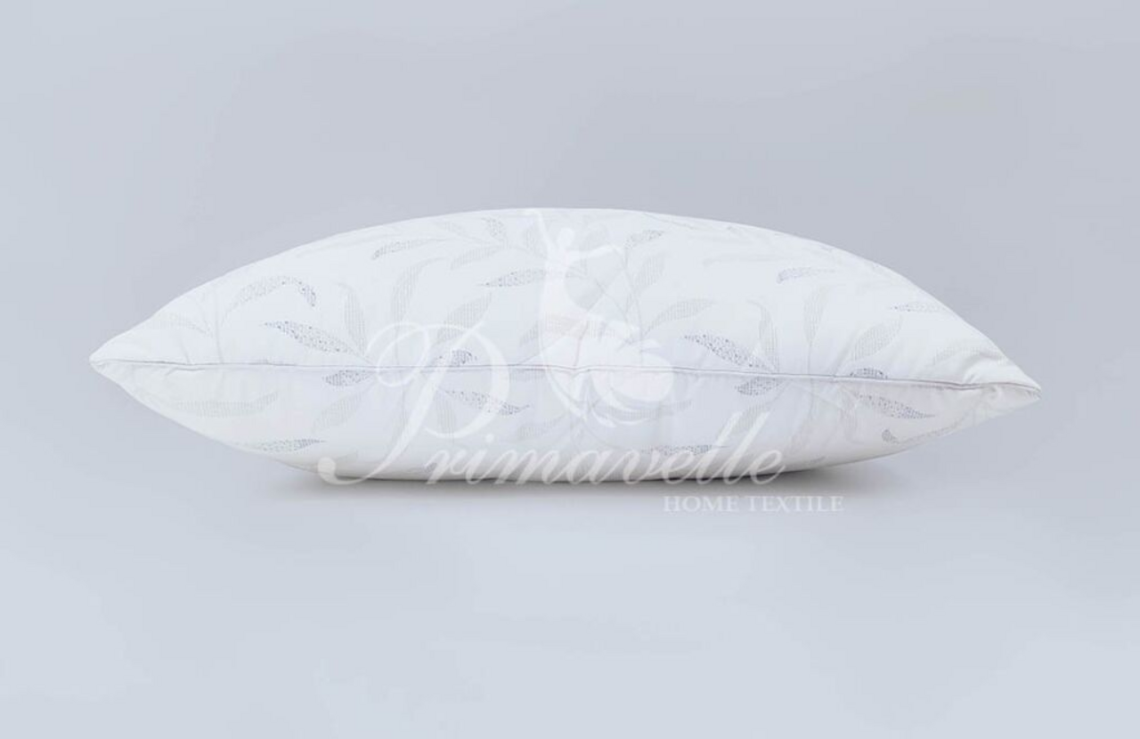 Изделие двухкамерное. Верхний слой простеган с экологичным эвкалиптовым волокном, которое быстро впитывает влагу и прекрасно пропускает воздух, позволяя коже дышать. Внутреннее ядро наполнено воздушным и объемным Экофайберомтм, за счет этого подушка мгновенно восстанавливает форму, не впитывает пыль и запахи и подходит для людей с чувствительной кожей.