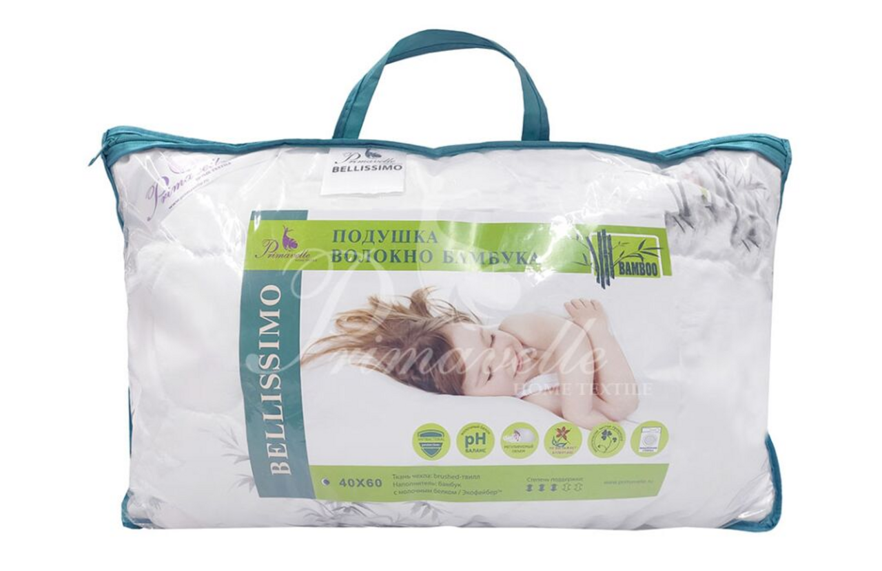 Подушка состоит из 2х слоев: внешний слой – бамбук, внутренний слой, добавляющий объем – Экофайбер™.