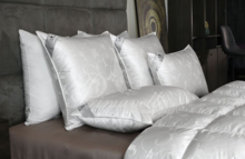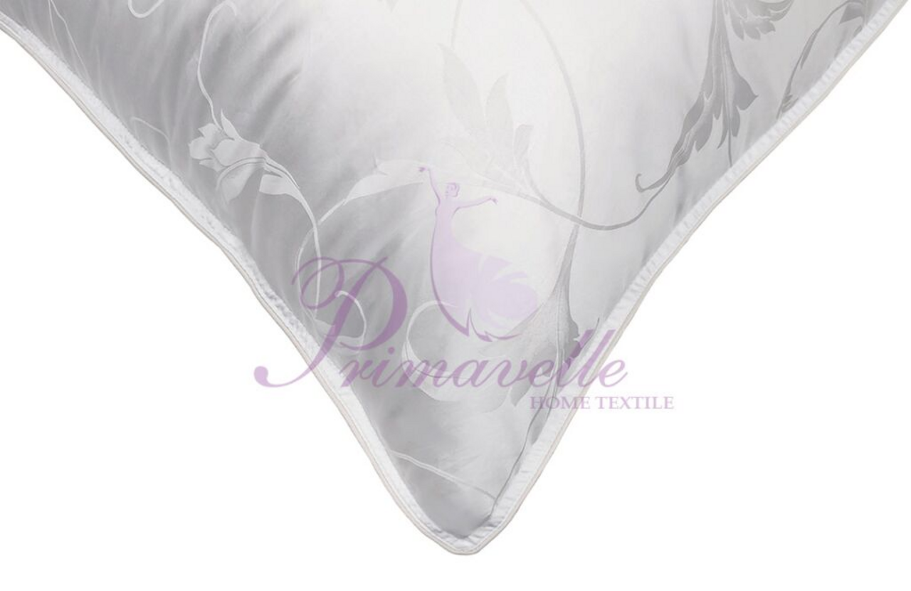 Изысканное сочетание нежнейшей шелковой ткани (satin-jacquard) и высококачественного белого гусиного пуха создает неповторимый шедевр - легкую и воздушную пуховую подушку Monferrat.