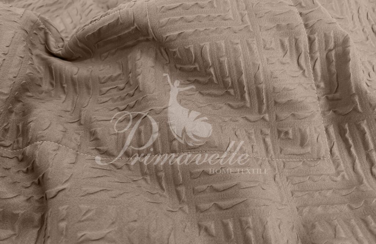 Покрывало Marenga создано для любителей оригинальных интерьерных решений. Объемная фактура ткани в сочетании с актуальным цветом бархатного таупа помогут создать неповторимый стиль в Вашей спальне. Сдержанный и одновременно запоминающийся дизайн покрывала украсит любой современный интерьер. Благодаря особой технологии производства, рельефный рисунок на ткани сохранится на протяжении всего срока использования изделия. Прочная ткань устойчива к деформациям, не пиллингуется, не оставляет затяжек. Оптимальное соотношение вискозы и полиэстера в составе наделяет покрывало такими важными свойствами как гипоаллергенность, антистатичность, износостойкость. Изделие не треубет особых условий ухода, легко стирается и быстро сохнет.