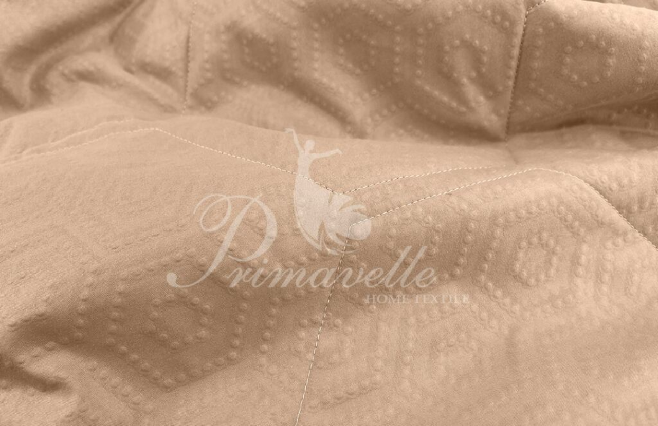 Двустороннее покрывало Relax - комфортное, практичное и стильное решение для вашей спальни. Изюминкой покрывала является оригинальная ткань с объемным фактурным дизайном, который создает оригинальный внешний вид и дарит приятные тактильные ощущения. В составе ткани органично сочетаются вискозные и полиэфирные нити, благодаря чему изделие имеет лучшие потребительские свойства, такие как легкость, мягкость, антистатичность, гипоаллергенность и износостойкость. Покрывало украшено модной ниточной стежкой "Соты", которая повторяет геометрию фактурного дизайна. Изделие прекрасно переносит регулярные стирки и быстро сохнет. Современная технология производства ткани гарантирует сохранение рельефа рисунка и стойкость цвета. Отсутствие пиллинга и устойчивость к образованию зацепок позволяют использовать покрывало и в качестве накидки на диван.