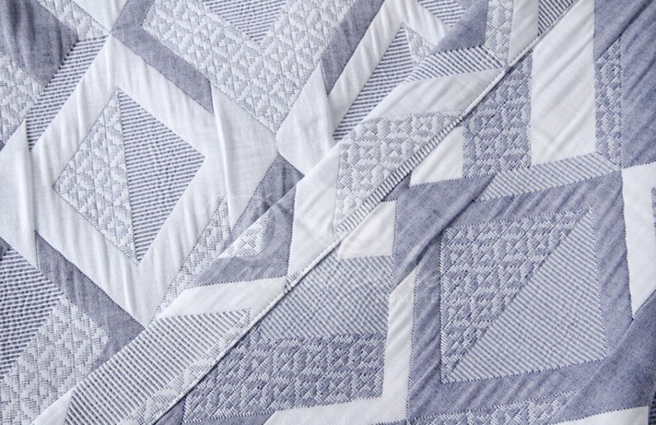 Динамичная геометрия дизайна выполнена в модном цвете деним, который прекрасно дополнит интерьер современной спальни, как взрослой, так и подростковой.