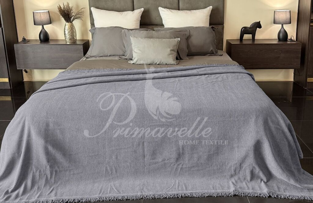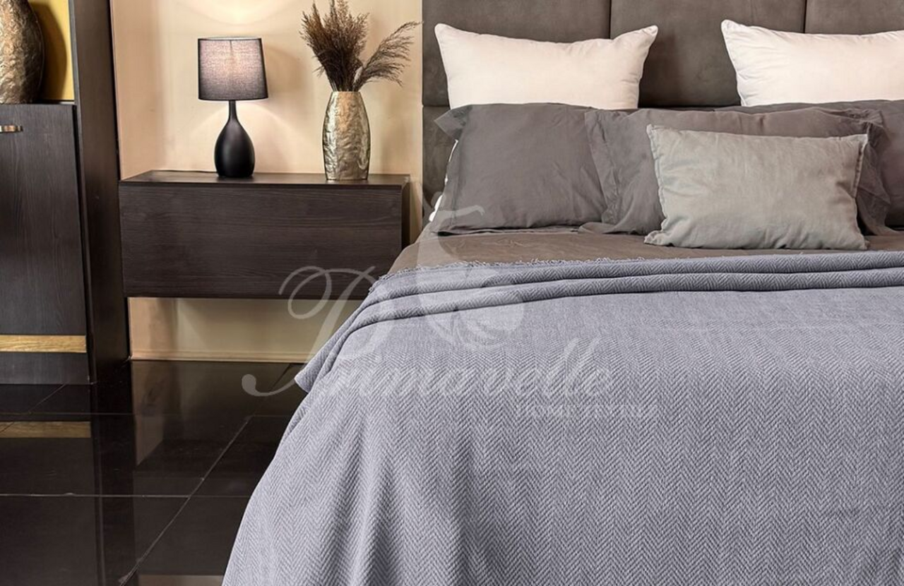 Мягкое и уютное пледовое покрывало Tangle из жаккардового шенилла - универсальное решение для современного дома. Шенилл - плотная ткань с бархатистой и нежной фактурой имеет небольшой вес, что важно для ежедневного использования. В отличие от других ворсовых тканей, шенилл обладает высокой износостойкостью, не пиллингуется и надолго сохраняет свой первоначальный вид. Классический жаккардовый рисунок "ёлочка" в тандеме с элегантным оттенком графитового подчеркивают благородство изделия, а декоративная бахрома придает ему особый шарм. Покрывало Tangle украсит не только кровать, но и станет идеальным дополнением для Вашего дивана, обеспечивая защиту обивки от износа и помогая обновить интерьер. Помимо этого, изделие можно использовать, как уютный плед. Покрывало не требует особых условий ухода, хорошо переносит чистку и стирку.