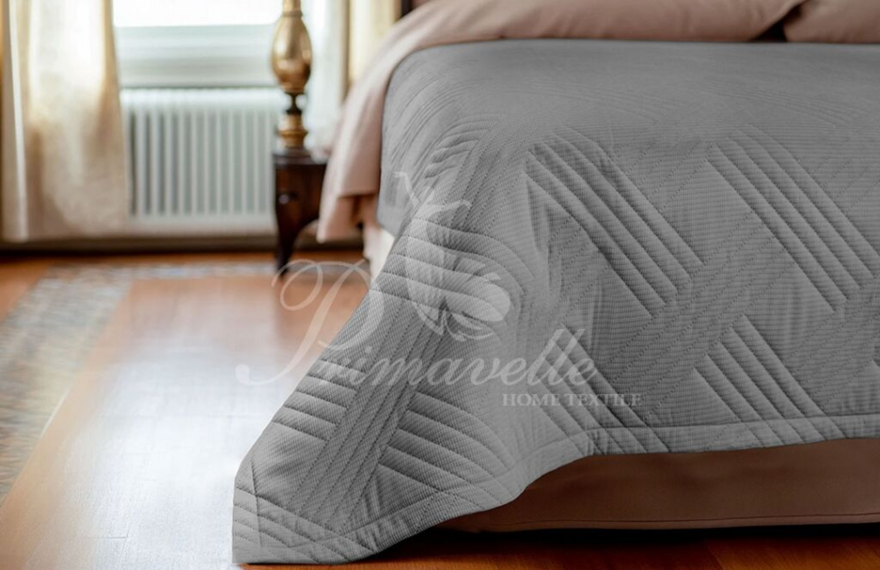 Лаконичный оттенок серого создаст атмосферу спокойствия и умиротворения в Вашей спальне. Покрывало сшито по европейским стандартам качества, имеет широкую подгибку с евроуглом.