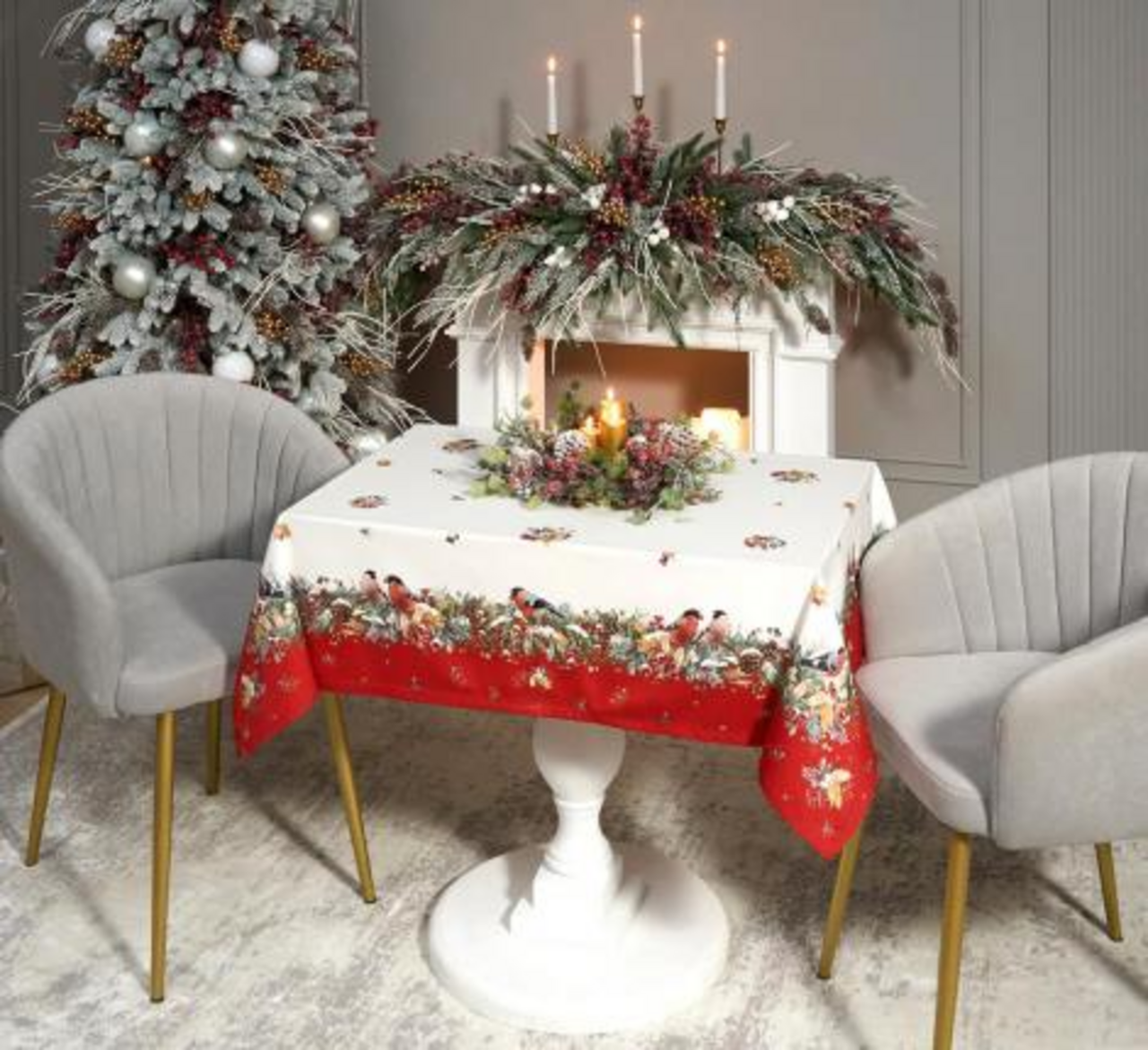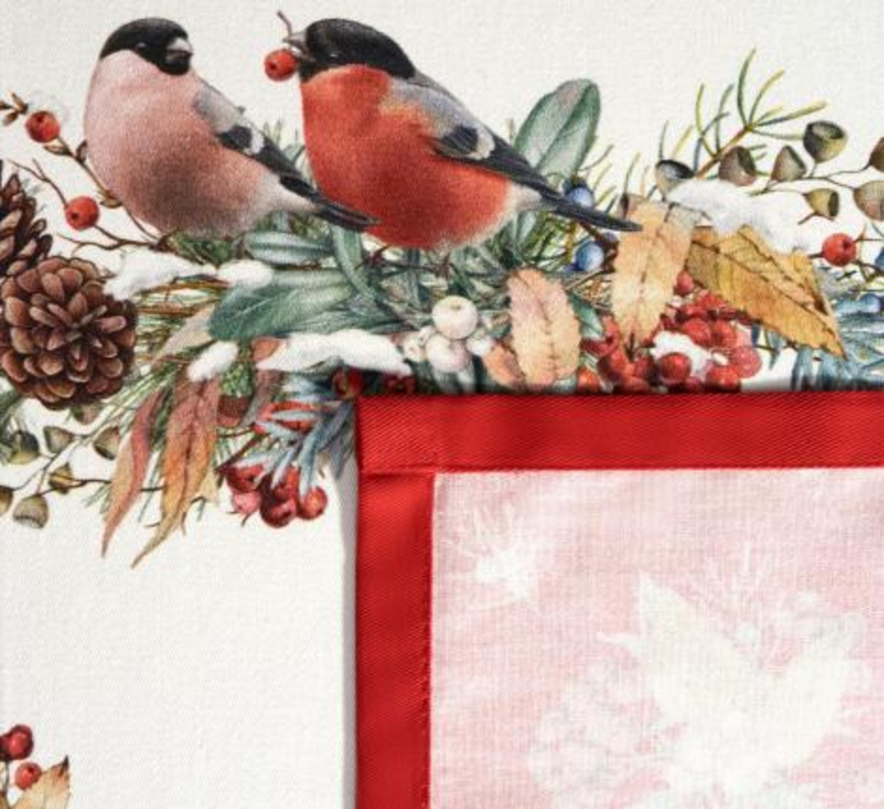 СКАТЕРТЬ "МОРОЗКО.СНЕГИРИ" 110Х140СМ ,КРАСНЫЙ, 100% ХЛОПОК,ТВИЛ ПРОПИТКА