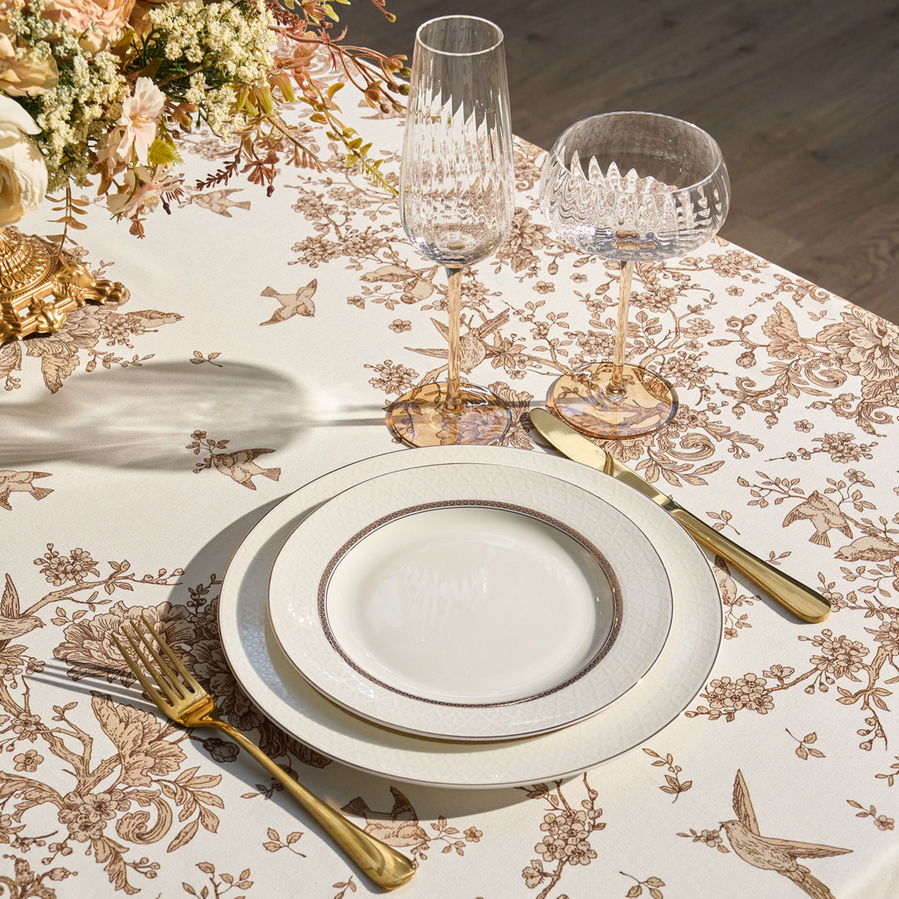 Скатерть "ROYAL GARDEN" — это волшебное дополнение к вашему столу, вдохновлённое элегантной атмосферой, которое принесёт уют и отличное настроение в ваш дом. Изготовленная из 100% натурального хлопка, она отличается мягкостью и прочностью, обеспечивая комфорт и долговечность в эксплуатации. Скатерть добавляет теплоты и элегантности, идеально сочетаясь с различными интерьерами и декором, от классического до современного. Она идеально подходит для семейных обедов, празднований или повседневных трапез, защищая поверхность стола от пятен и добавляя нотку элегантного шарма. Легко стирается и сохраняет форму, делая уход за ней максимально простым.
