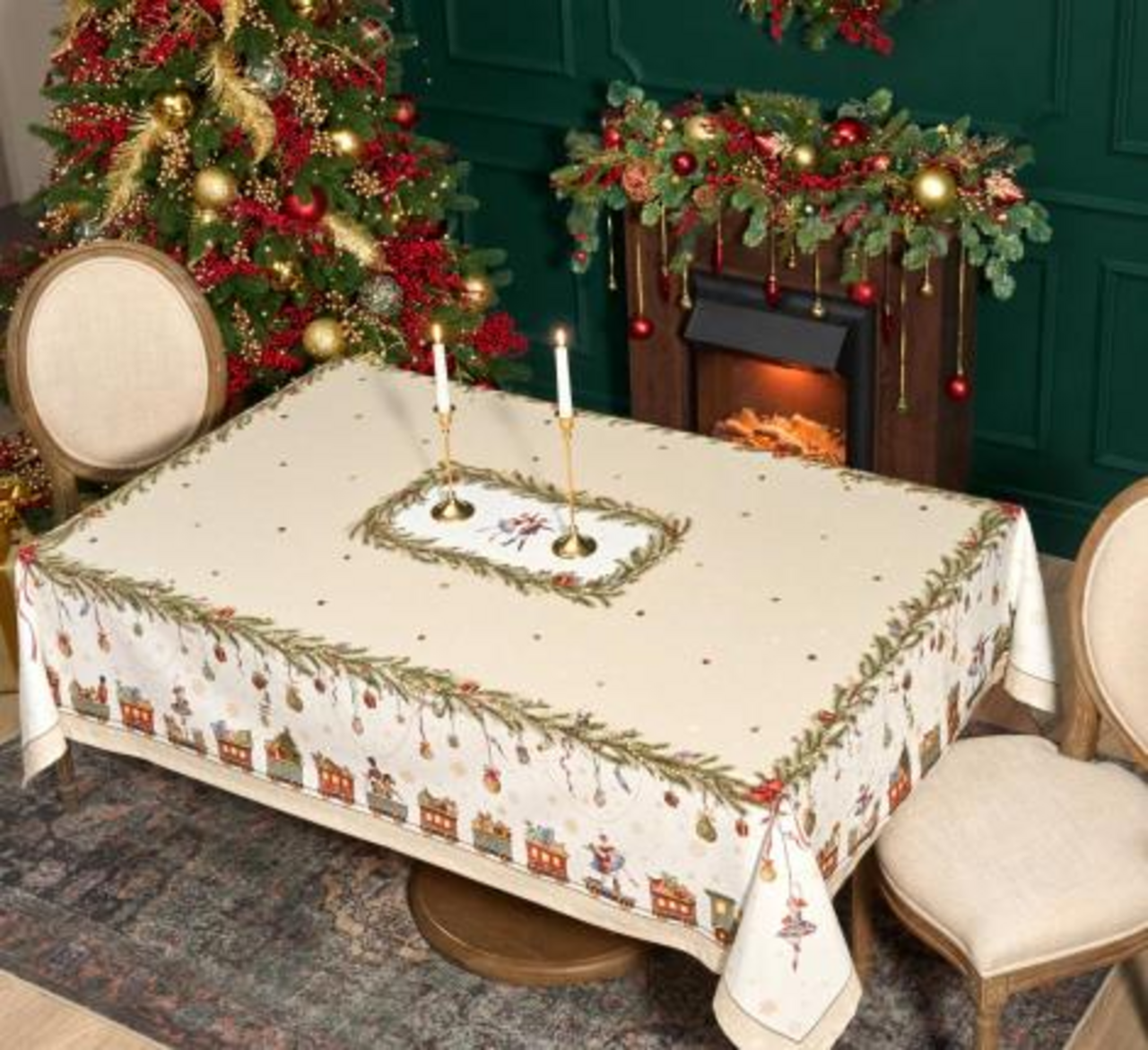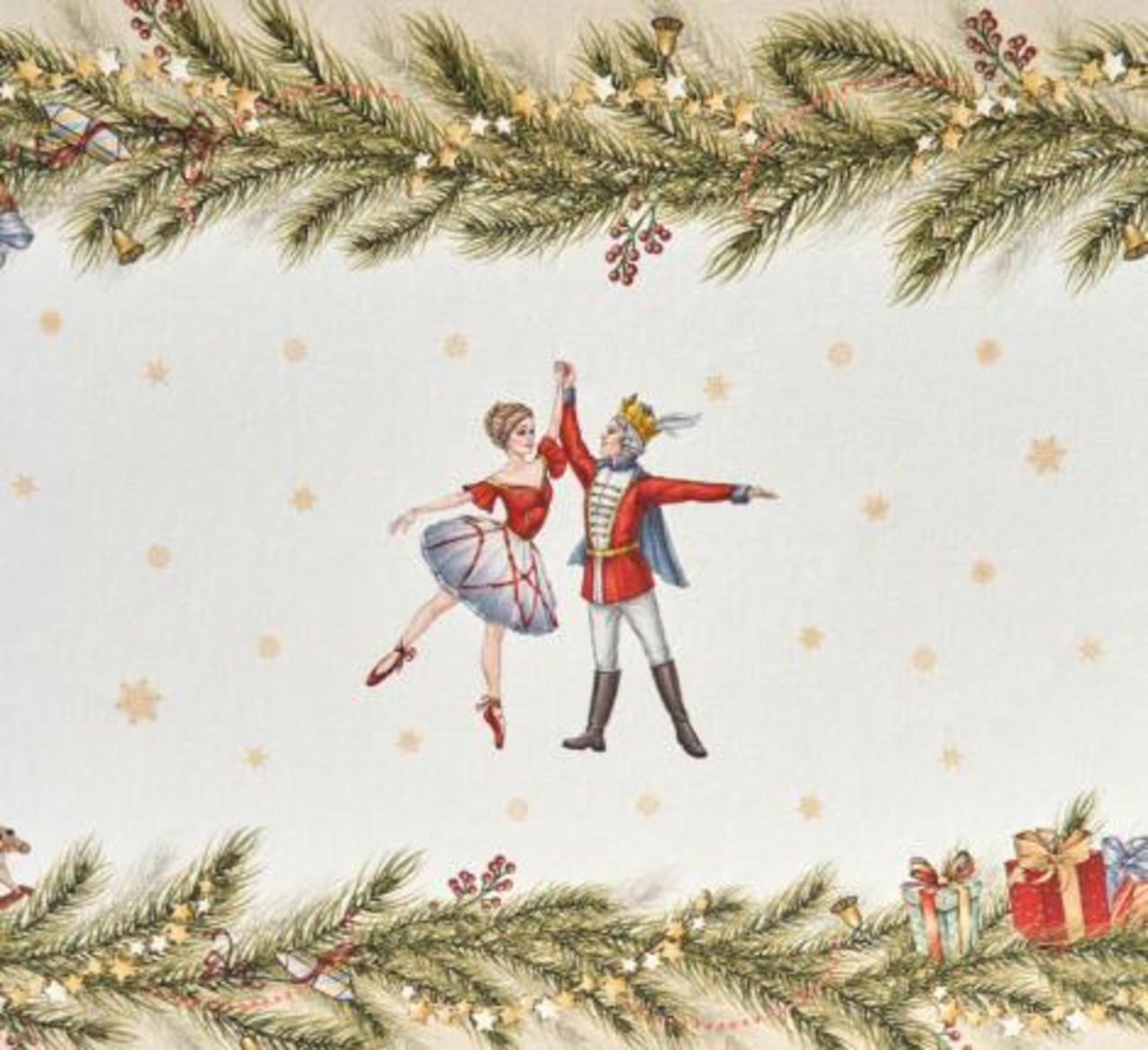 Скатерть новогодней серии "Щелкунчик" — это волшебное дополнение к столу, вдохновлённое сказочной атмосферой, которое принесёт уют и праздничное настроение в ваш дом. Изготовленная из 100% натурального хлопка, она отличается мягкостью и прочностью, обеспечивая комфорт и долговечность в эксплуатации. Скатерть добавляет теплоты и элегантности, идеально сочетаясь с различными интерьерами и декором, от классического до современного. Скатерть идеально подходит для семейных обедов, празднований или повседневных трапез, защищая поверхность стола от пятен и добавляя нотку сказочного шарма. Легко стирается и сохраняет форму, делая уход за ней максимально простым.