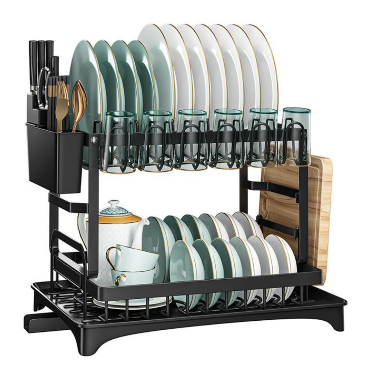 Двухъярусная металлическая сушилка с поддоном — это практичное решение для эффективной сушки тарелок, стаканов, столовых приборов и других кухонных принадлежностей.