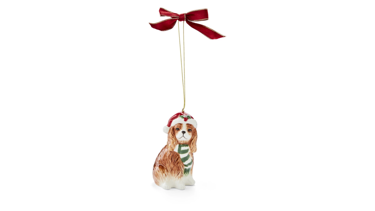 Особенность елочных игрушек от Spode заключается в том, что они изготовлены из прочной керамики, а значит, прослужат не один год и станут отличным подарком на Новый год и Рождество. Новогодний декор в виде милого и обаятельного щенка особенно понравится любителям собак. Дизайнеры британского бренда искусно воплотили образ кинг-чарльз-спаниеля – одной из самых очаровательных пород, пользующейся особой любовью англичан. Игрушка демонстрирует внимание к деталям, позволяя рассмотреть и длинную каштановую шерсть песика, и украшение на его рождественском колпаке.